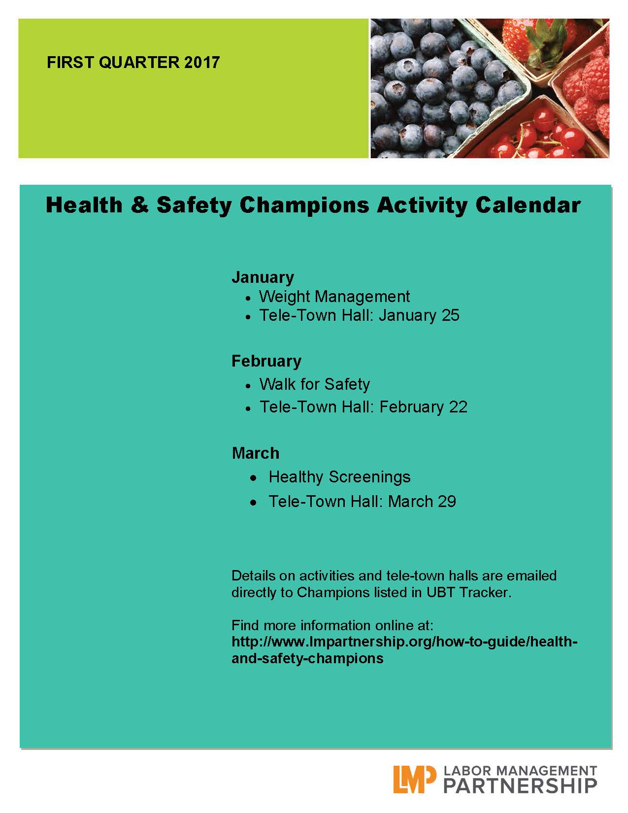 Best used: Champions can use this flier to plan health and safety activities for their team during the first quarter of 2017.