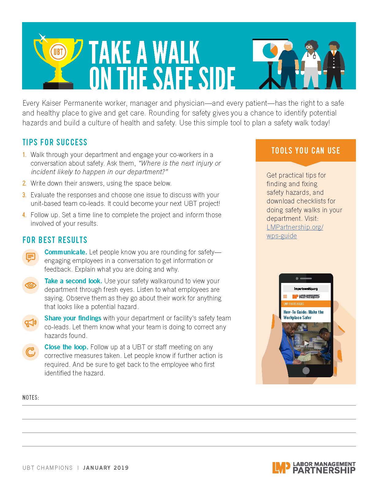 TOOLS Health and Safety Champions — January 2019 Focus Share Instagram Email Format:PDFSize:One page, 8.5" x 11"Intended audience:UBT health and safety championsBest used:Follow these steps to lead a safety walk-around in your department.Related tools: Health and Safety Champions—January 2018 Focus Health and Safety Champions — February 2019 Focus Health and Safety Champions — March 2019 Focus Health and Safety Champions — April 2019 Focus Health and Safety Champions — May 2019 Focus Download PDF 22 people found this helpful. Was it helpful to you? YesNo