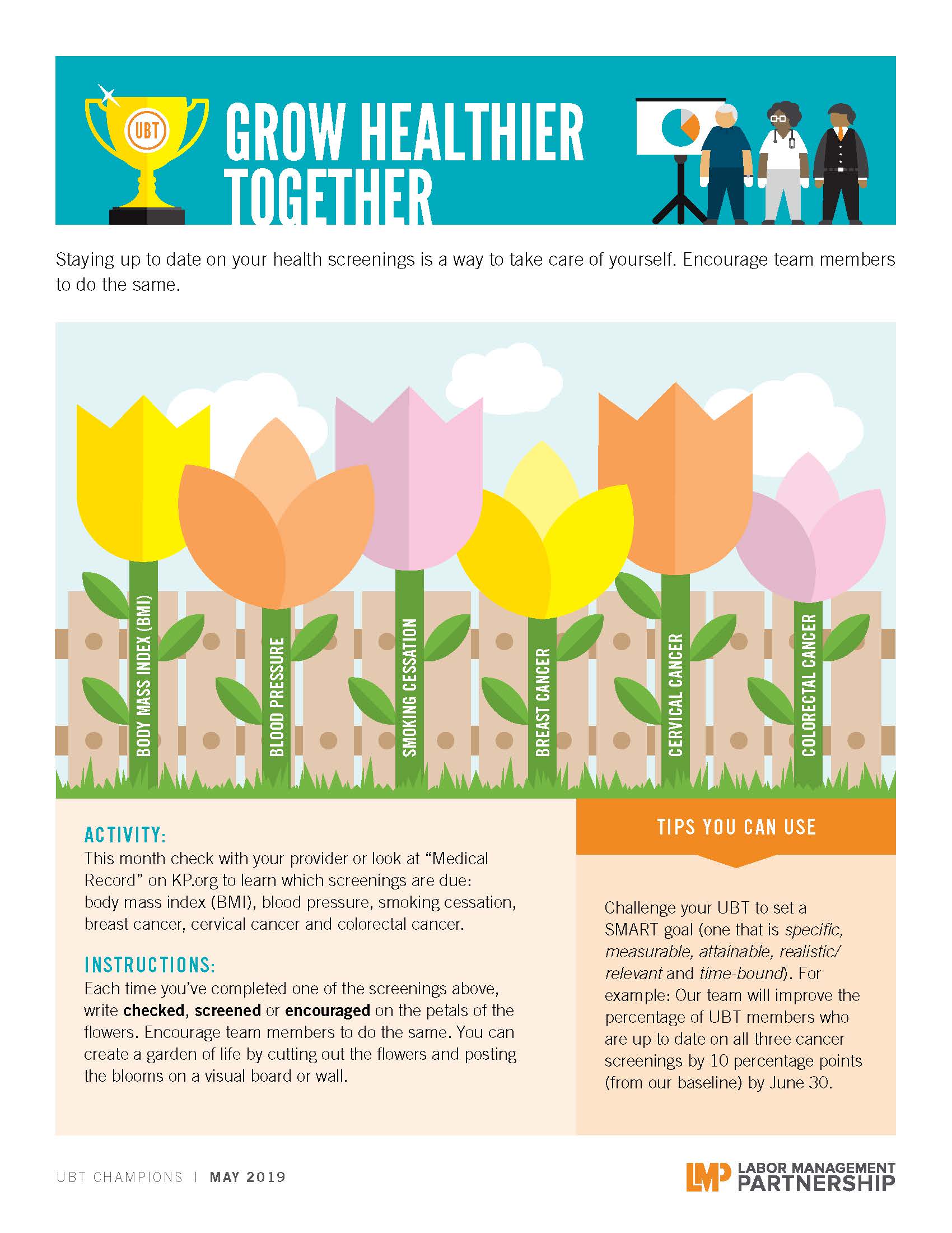 TOOLS Health and Safety Champions — May 2019 Focus Share Instagram Email Format:PDFSize:One page, 8.5" x 11" Intended audience:UBT health and safety championsBest used:Encourage your teammates to stay up to date on their health screenings.Related tools: Health and Safety Champions—October 2018 Focus Health and Safety Champions — September 2020 Focus Health and Safety Champions—February 2018 Focus Health and Safety Champions — July 2019 Focus Health and Safety Champions — April 2019 Focus Download PDF 16 people found this helpful. Was it helpful to you? YesNo