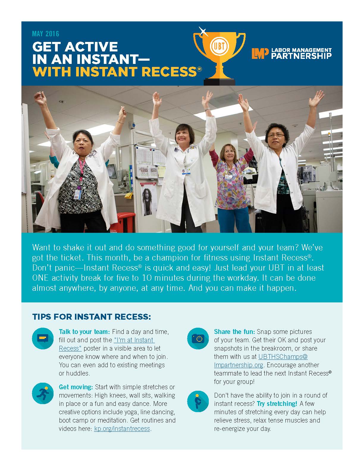 Best used: This flier introduces the May 2016 topic for champions to share with their team. Use this flier to lead your team in an Instant Recess activity.